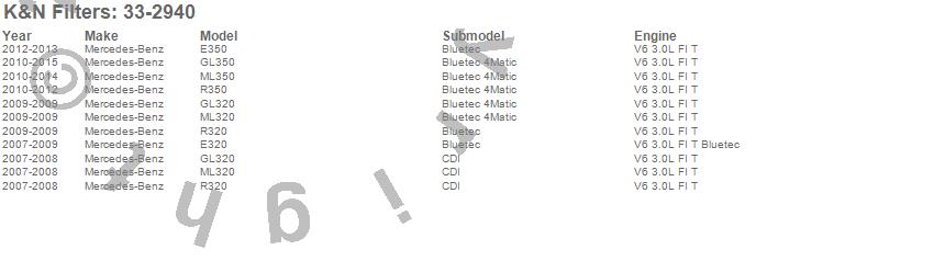 Below is an abbreviated list of applications for the Air Filter.E320, E350, GL320, GL350, ML320, ML350, R320, R350, Mercedes-Benz, 2015, 2014, 2013, 2012, 2011, 2010, 2009, 2008, 2007