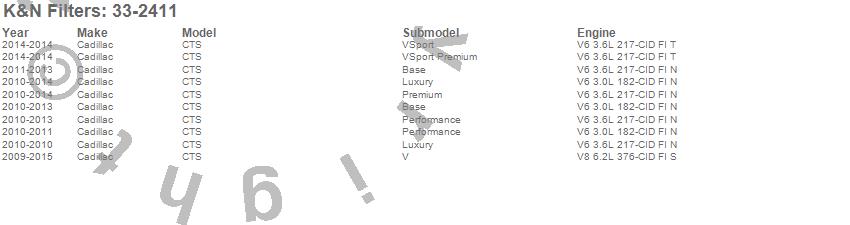 Below is an abbreviated list of applications for the Air Filter.CTS, Cadillac, 2015, 2014, 2013, 2012, 2011, 2010, 2009