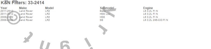 Below is an abbreviated list of applications for the Air Filter.LR2, Land Rover, 2012, 2011, 2010, 2009, 2008