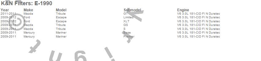 Below is an abbreviated list of applications for the Air Filter.Escape, Mariner, Tribute, Ford, Mazda, Mercury, 2012, 2011, 2010, 2009