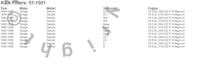 Below is an abbreviated list of applications for the Filtercharger Injection Performance Kit.Dakota, Dodge, 1996, 1995, 1994, 1993, 1992