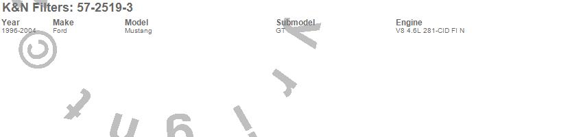 Brand: K&N FiltersPart Number: 57-2519-3Air Intake Kit Type: Incl. Air Filter/Heat Shield/Tubing - Estimated Horsepower Gain 10.07 HP At 4945 RPMUPC: 024844095008