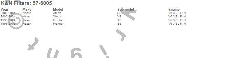 Below is an abbreviated list of applications for the Filtercharger Injection Performance Kit.Frontier, Xterra, Nissan, 2004, 2003, 2002, 2001, 2000, 1999