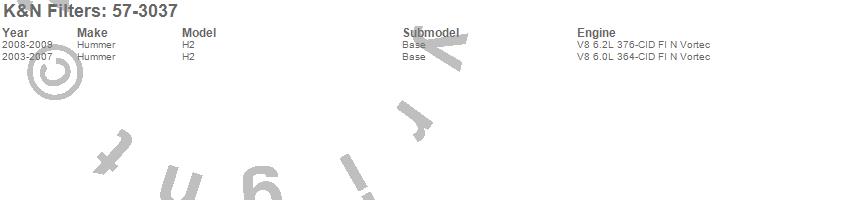 Below is an abbreviated list of applications for the Filtercharger Injection Performance Kit.H2, Hummer, 2009, 2008, 2007, 2006, 2005, 2004, 2003