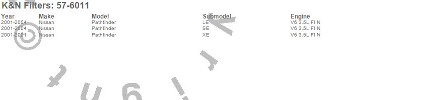 Below is an abbreviated list of applications for the Filtercharger Injection Performance Kit.Pathfinder, Nissan, 2004, 2003, 2002, 2001