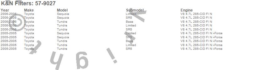 Below is an abbreviated list of applications for the Filtercharger Injection Performance Kit.Sequoia, Tundra, Toyota, 2006, 2005