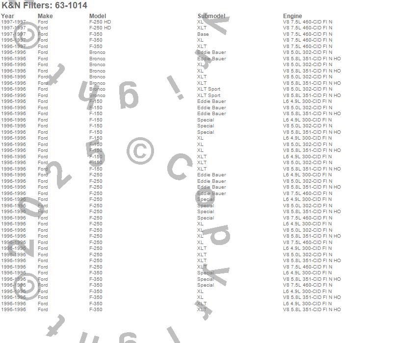 Below is an abbreviated list of applications for the 63 Series Aircharger Kit.Bronco, F-150, F-250, F-250 HD, F-350, Ford, 1997, 1996
