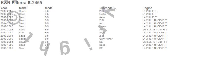 Below is an abbreviated list of applications for the Air Filter.9-5, Saab, 2009, 2008, 2007, 2006, 2005, 2004, 2003, 2002, 2001, 2000, 1999