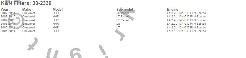 Below is an abbreviated list of applications for the Air Filter.HHR, Chevrolet, 2011, 2010, 2009, 2008, 2007, 2006