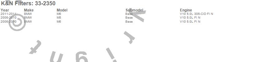 Below is an abbreviated list of applications for the Air Filter.M5, M6, BMW, 2010, 2009, 2008, 2007, 2006