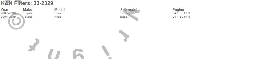 Below is an abbreviated list of applications for the Air Filter.Prius, Toyota, 2009, 2008, 2007, 2006, 2005, 2004