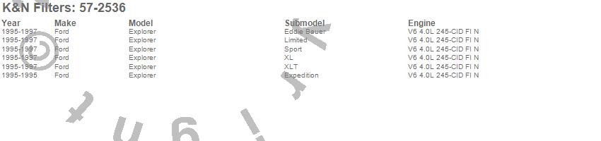 Below is an abbreviated list of applications for the Filtercharger Injection Performance Kit.Explorer, Ford, 1997, 1996, 1995