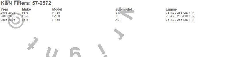 Below is an abbreviated list of applications for the Filtercharger Injection Performance Kit.F-150, Ford, 2006, 2005
