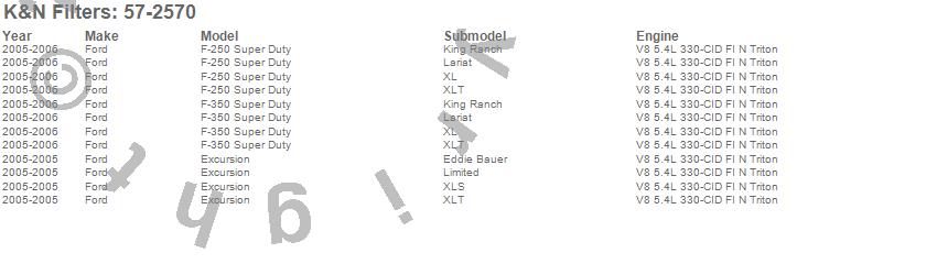 Below is an abbreviated list of applications for the Filtercharger Injection Performance Kit.Excursion, F-250 Super Duty, F-350 Super Duty, Ford, 2006, 2005