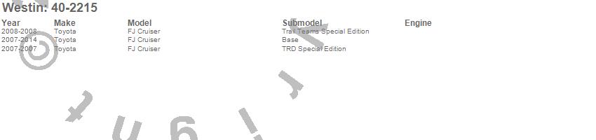 Brand: WestinPart Number: 40-2215Grille Guard Type: Black - Steel - Double Hood BarUPC: 707742011843