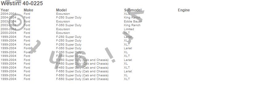 Below is an abbreviated list of applications for the Sportsman Grille Guard.Excursion, F-250 Super Duty, F-350 Super Duty, F-450 Super Duty, F-550 Super Duty, Ford, 2004, 2003, 2002, 2001, 2000, 1999