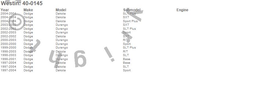 Below is an abbreviated list of applications for the Sportsman Grille Guard.Dakota, Durango, Dodge, 2004, 2003, 2002, 2001, 2000, 1999, 1998, 1997