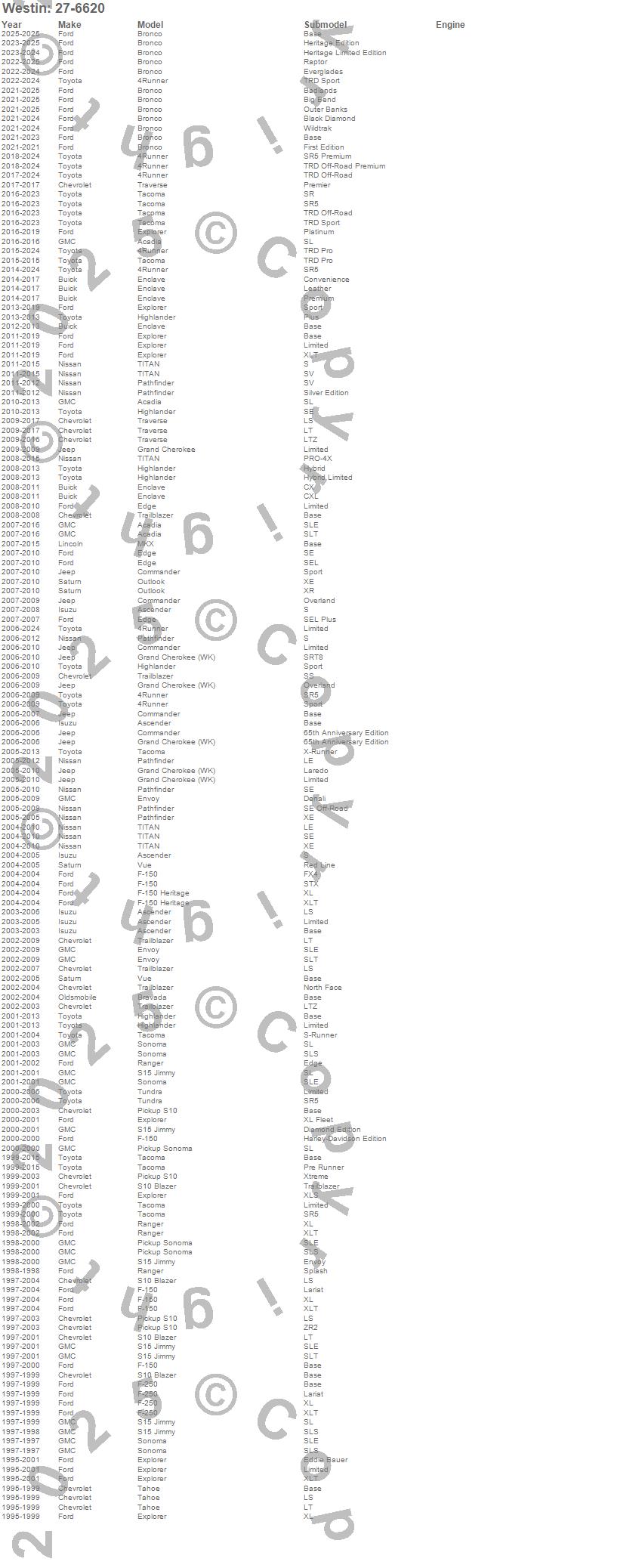 Below is an abbreviated list of applications for the Sure-Grip Running Boards.4Runner, Acadia, Ascender, Bravada, Bronco, Commander, Edge, Enclave, Envoy, Explorer, F-150, F-150 Heritage, F-250, Grand Cherokee, Grand Cherokee (WK), Highlander, MKX, Outlook, Pathfinder, Ranger