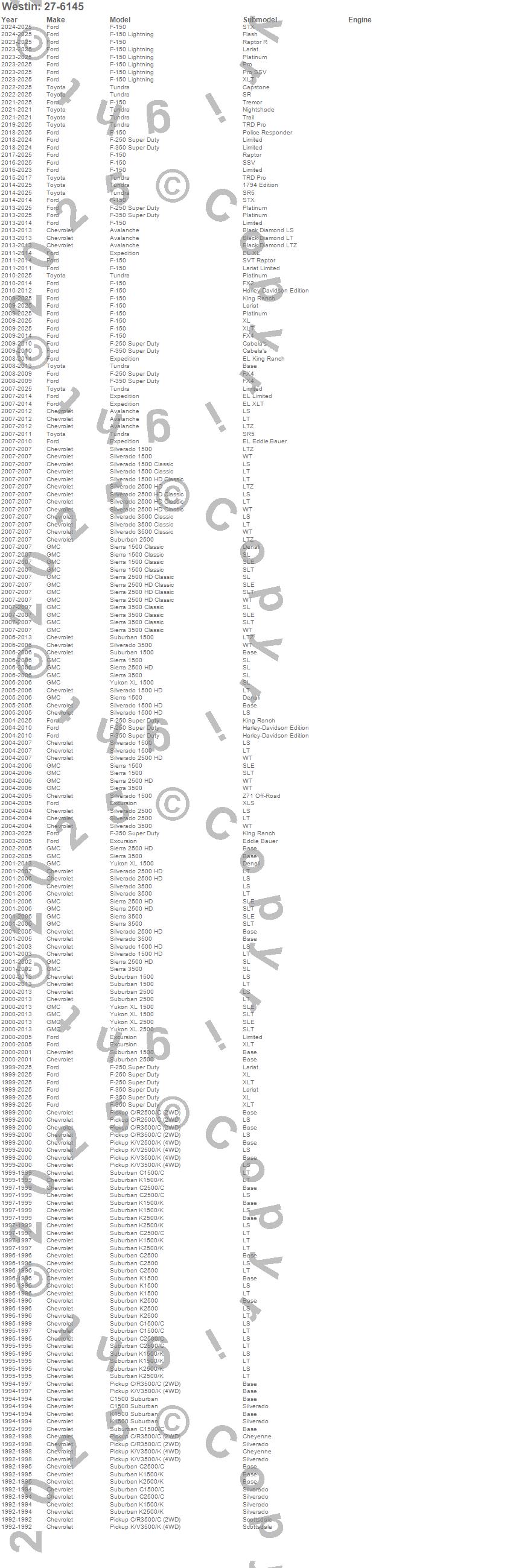 Below is an abbreviated list of applications for the Sure-Grip Running Boards.Avalanche, C1500 Suburban, C2500 Pickup, C2500 Suburban, C3500 Pickup, Excursion, Expedition, F-150, F-150 Lightning, F-250 Super Duty, F-350 Super Duty, F-450 Super Duty, F-550 Super Duty, K1500 Suburban, K2500 Pickup, K2500 Suburban, K3500 Pickup, Sierra 1500, Sierra 1500 Classic, Sierra 2500 HD
