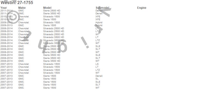 Brand: WestinPart Number: 27-1755Running Board Mount Kit Type: Black FinishUPC: 707742009550