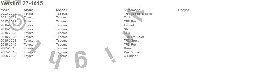 Brand: WestinPart Number: 27-1615Running Board Mount Kit Type: No Drilling Required - Black FinishUPC: 707742004555