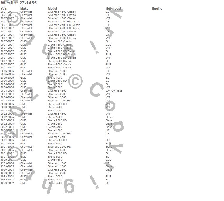 Below is an abbreviated list of applications for the Running Board Mount Kit.Sierra 1500, Sierra 1500 Classic, Sierra 2500, Sierra 2500 HD, Sierra 2500 HD Classic, Sierra 3500, Sierra 3500 Classic, Silverado 1500, Silverado 1500 Classic, Silverado 2500, Silverado 2500 HD, Silverado 2500 HD Classic, Silverado 3500, Silverado 3500 Classic, Chevrolet, GMC, 2007, 2006, 2005, 2004