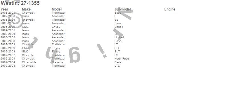 Below is an abbreviated list of applications for the Running Board Mount Kit.Ascender, Bravada, Envoy, Trailblazer, Chevrolet, GMC, Isuzu, Oldsmobile, 2009, 2008, 2007, 2006, 2005, 2004, 2003, 2002