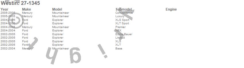 Below is an abbreviated list of applications for the Running Board Mount Kit.Explorer, Mountaineer, Ford, Mercury, 2005, 2004, 2003, 2002