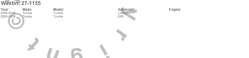 Below is an abbreviated list of applications for the Running Board Mount Kit.Tundra, Toyota, 2006, 2005, 2004, 2003, 2002, 2001, 2000