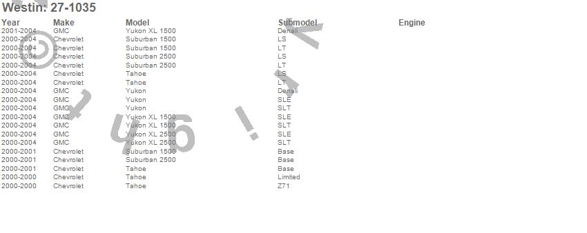 Below is an abbreviated list of applications for the Running Board Mount Kit.Suburban 1500, Suburban 2500, Tahoe, Yukon, Yukon XL 1500, Yukon XL 2500, Chevrolet, GMC, 2004, 2003, 2002, 2001, 2000