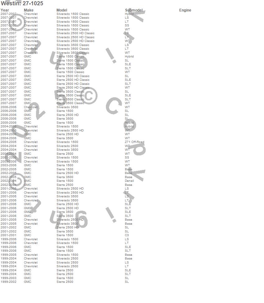 Below is an abbreviated list of applications for the Running Board Mount Kit.Sierra 1500, Sierra 1500 Classic, Sierra 2500, Sierra 2500 HD, Sierra 2500 HD Classic, Sierra 3500, Sierra 3500 Classic, Silverado 1500, Silverado 1500 Classic, Silverado 2500, Silverado 2500 HD, Silverado 2500 HD Classic, Silverado 3500, Silverado 3500 Classic, Chevrolet, GMC, 2007, 2006, 2005, 2004
