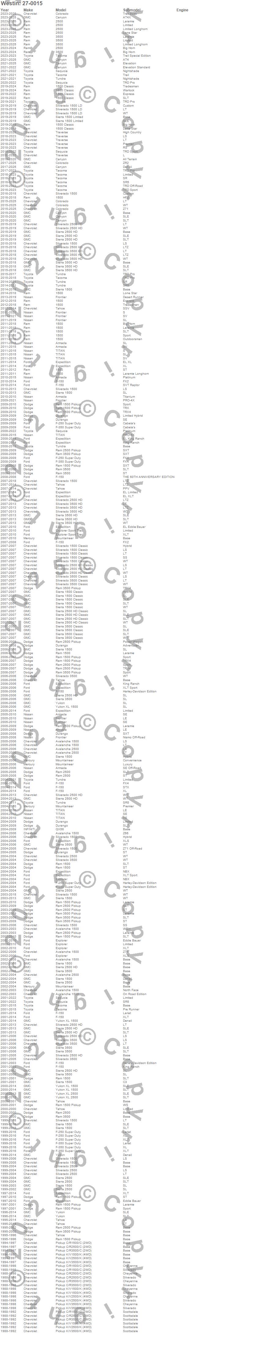 Brand: WestinPart Number: 27-0015Running Board Type: Lighted - 79 in. Board - Black Molded Plastic - Does Not Include Mount Kit - Vehicle Specific Mount Kit Must Be Purchased SeparatelyUPC: 707742500156