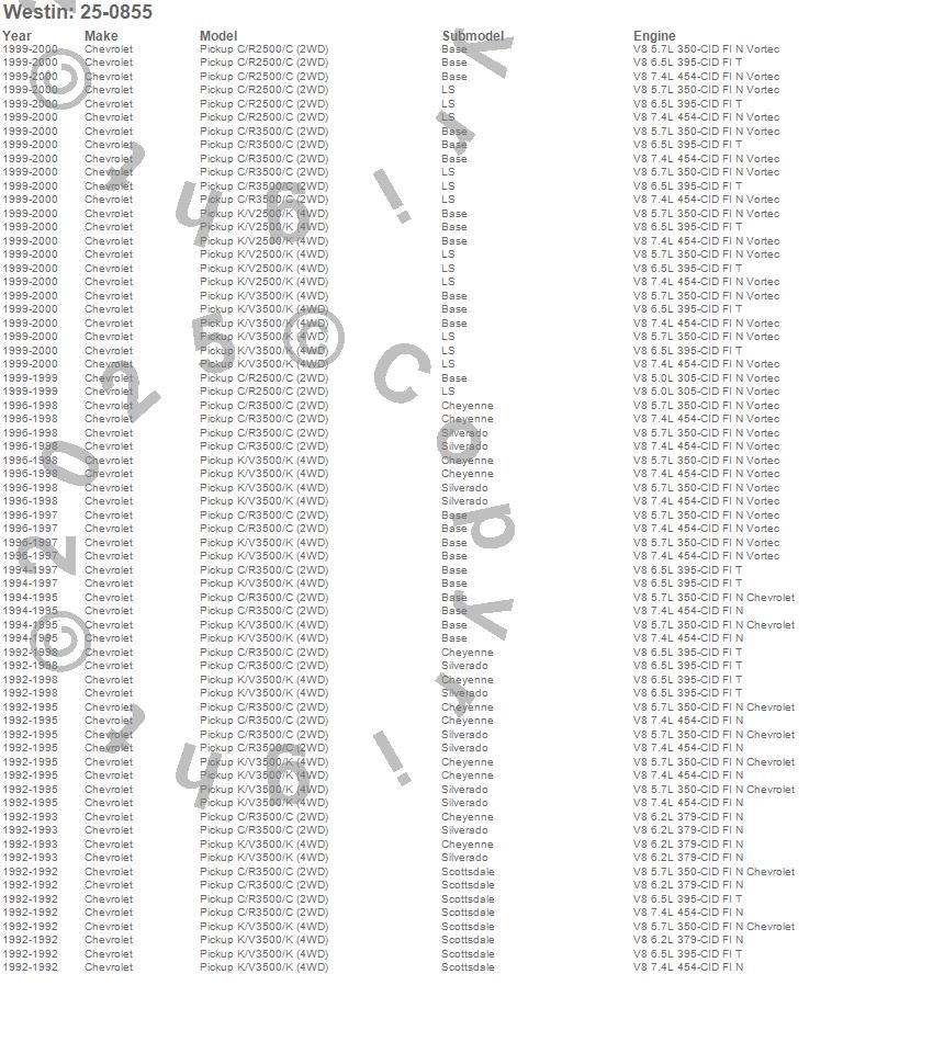 Below is an abbreviated list of applications for the Signature 3 Round Step Bar.C2500 Pickup, C3500 Pickup, K2500 Pickup, K3500 Pickup, Chevrolet, 2000, 1999, 1998, 1997, 1996, 1995, 1994, 1993, 1992