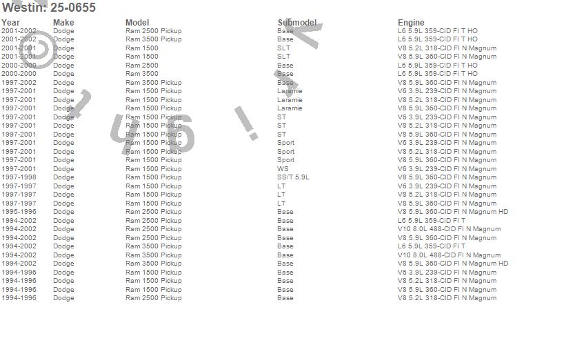 Below is an abbreviated list of applications for the Signature 3 Round Step Bar.Ram 1500, Ram 2500, Ram 3500, Dodge, 2002, 2001, 2000, 1999, 1998, 1997, 1996, 1995, 1994