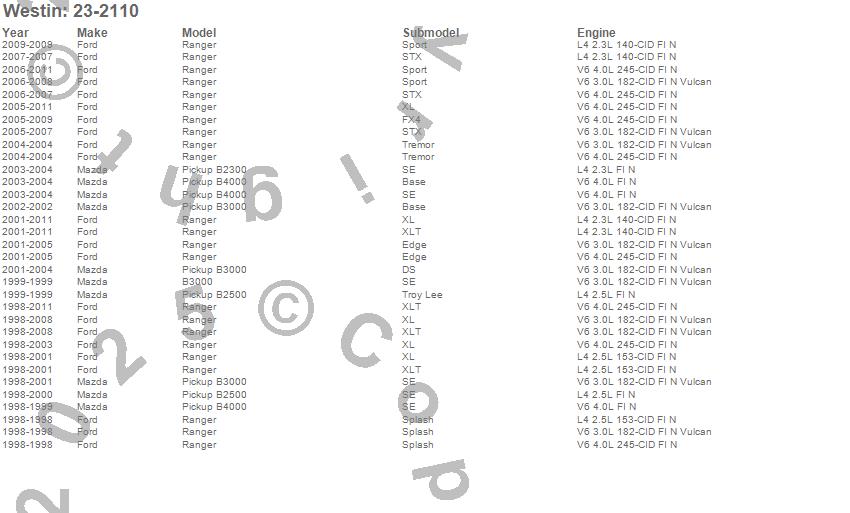 Below is an abbreviated list of applications for the E-Series 3 Round Nerf Step Bars.B2300, B2500, B3000, B4000, Ranger, Ford, Mazda, 2011, 2010, 2009, 2008, 2007, 2006, 2005, 2004, 2003, 2002, 2001, 2000, 1999