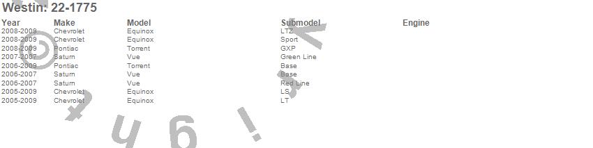 Below is an abbreviated list of applications for the Premier Oval Nerf Step Bar Mount Kit.Equinox, Torrent, Vue, Chevrolet, Pontiac, Saturn, 2009, 2008, 2007, 2006, 2005