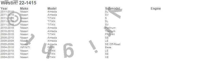 Below is an abbreviated list of applications for the Premier Oval Nerf Step Bar Mount Kit.Armada, QX56, TITAN, INFINITI, Nissan, 2015, 2014, 2013, 2012, 2011, 2010, 2009, 2008, 2007, 2006, 2005, 2004