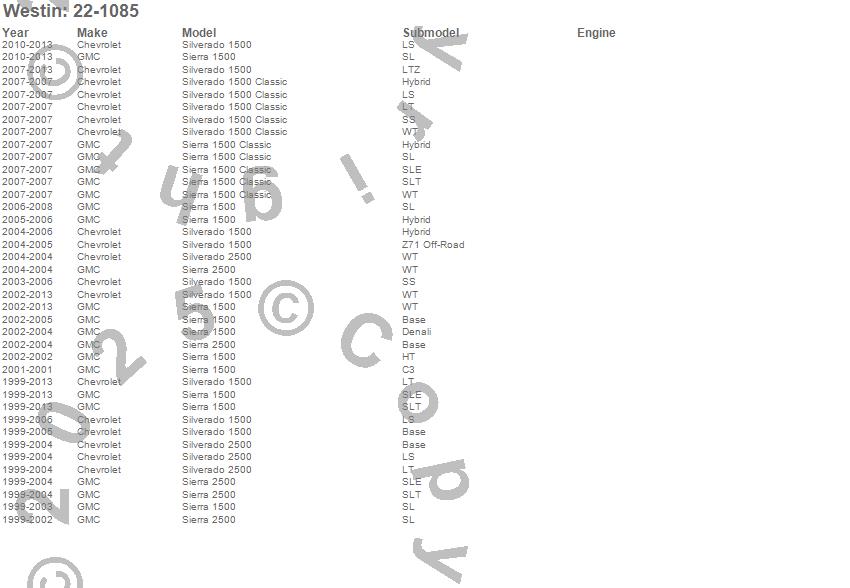 Below is an abbreviated list of applications for the Premier Oval Nerf Step Bar Mount Kit.Sierra 1500, Sierra 1500 Classic, Sierra 2500, Silverado 1500, Silverado 1500 Classic, Silverado 2500, Chevrolet, GMC, 2013, 2012, 2011, 2010, 2009, 2008, 2007, 2006, 2005, 2004, 2003, 2002