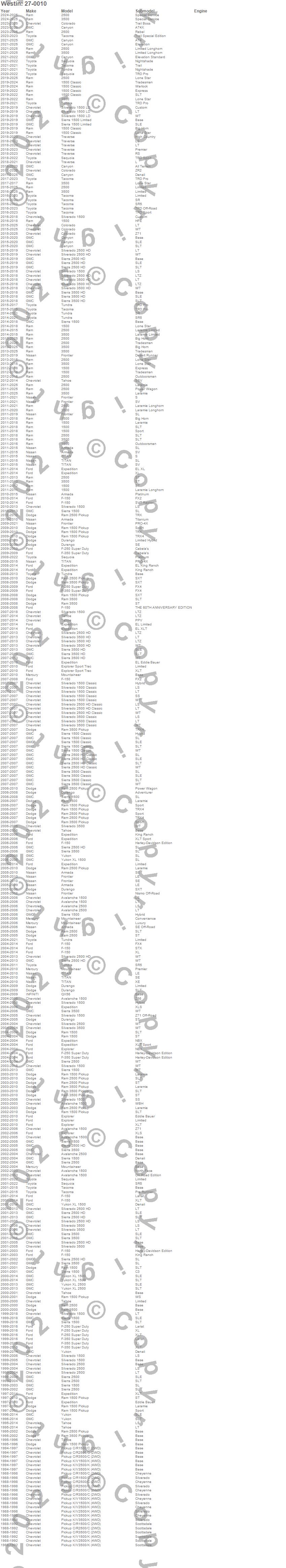 Brand: WestinPart Number: 27-0010Running Board Type: Unlighted - 79 in. Board - Black Molded Plastic - Does Not Include Mount Kit - Vehicle Specific Mount Kit Must Be Purchased SeparatelyUPC: 707742500101
