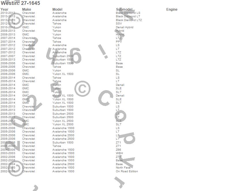 Below is an abbreviated list of applications for the Running Board Mount Kit.Avalanche, Avalanche 1500, Avalanche 2500, Suburban 1500, Suburban 2500, Tahoe, Yukon, Yukon XL 1500, Yukon XL 2500, Chevrolet, GMC, 2014, 2013, 2012, 2011, 2010, 2009, 2008, 2007, 2006