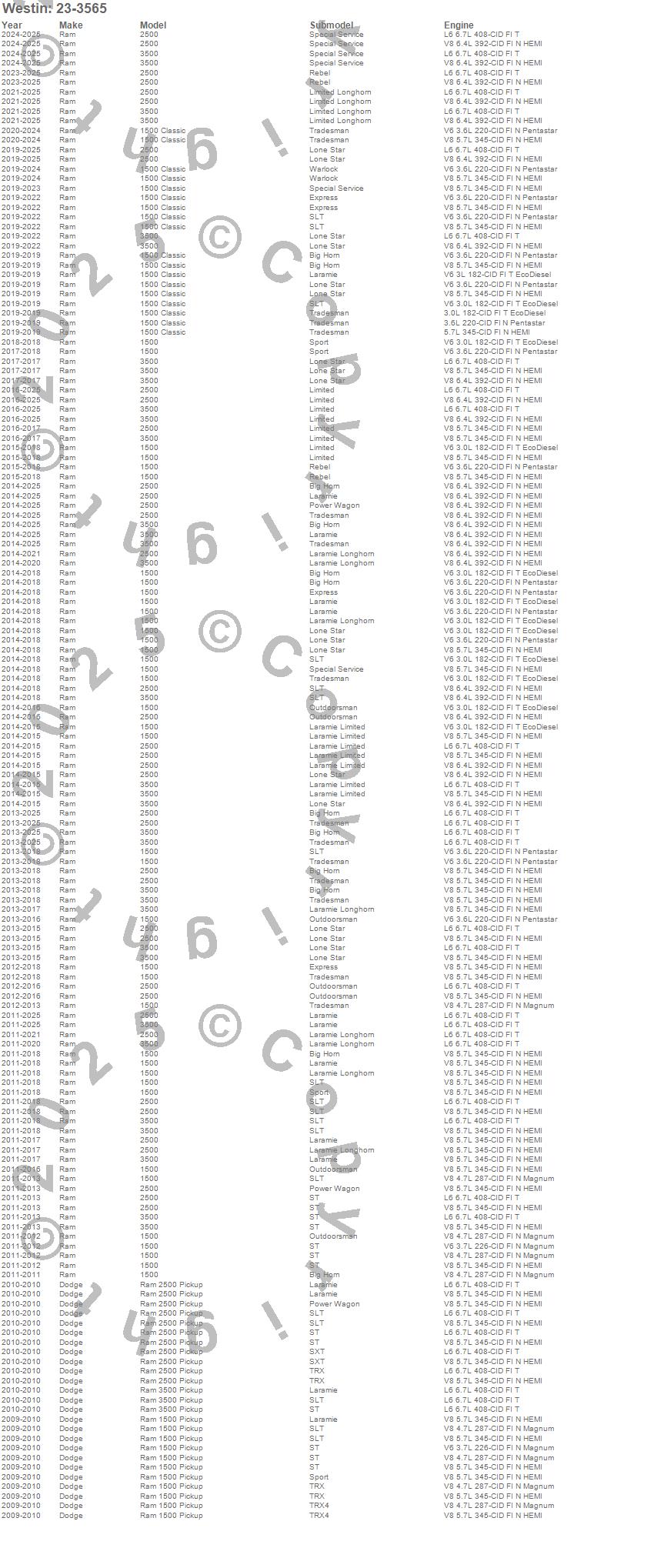 Below is an abbreviated list of applications for the E-Series 3 Round Nerf Step Bars.1500, 1500 Classic, 2500, 3500, Ram 1500, Ram 2500, Ram 3500, Dodge, Ram, 2025, 2024, 2023, 2022, 2021, 2020, 2019, 2018, 2017, 2016, 2015