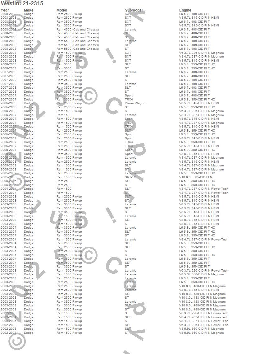 Below is an abbreviated list of applications for the Platinum 4 Oval Nerf Step Bars.Ram 1500, Ram 2500, Ram 3500, Ram 4500, Ram 5500, Dodge, 2009, 2008, 2007, 2006, 2005, 2004, 2003, 2002