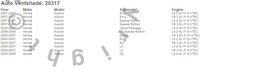 Below is an abbreviated list of applications for the Carflector Stone/Bug Deflector.Accord, Honda, 2007, 2006, 2005, 2004, 2003