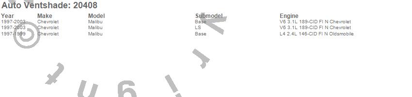 Below is an abbreviated list of applications for the Carflector Stone/Bug Deflector.Malibu, Chevrolet, 2003, 2002, 2001, 2000, 1999, 1998, 1997