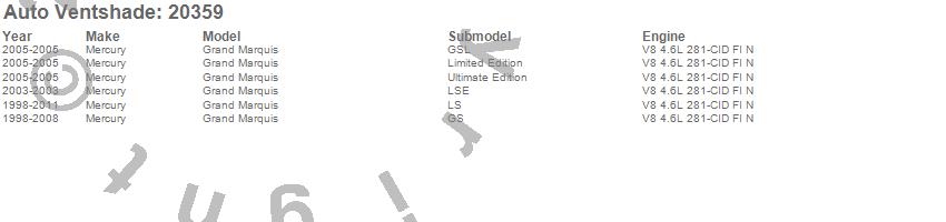 Below is an abbreviated list of applications for the Carflector Stone/Bug Deflector.Grand Marquis, Mercury, 2011, 2010, 2009, 2008, 2007, 2006, 2005, 2004, 2003, 2002, 2001, 2000, 1999, 1998