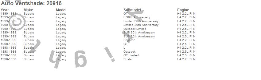 Below is an abbreviated list of applications for the Carflector Stone/Bug Deflector.Legacy, Subaru, 1999, 1998