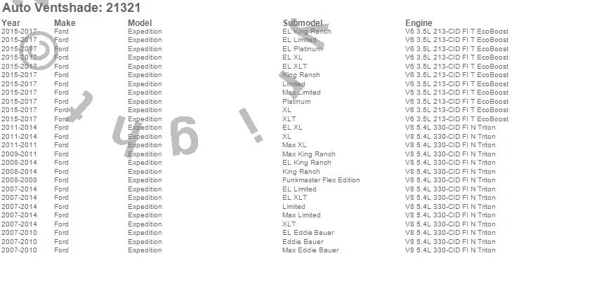 Below is an abbreviated list of applications for the Hoodflector Hood Protector.Expedition, Ford, 2017, 2016, 2015, 2014, 2013, 2012, 2011, 2010, 2009, 2008, 2007