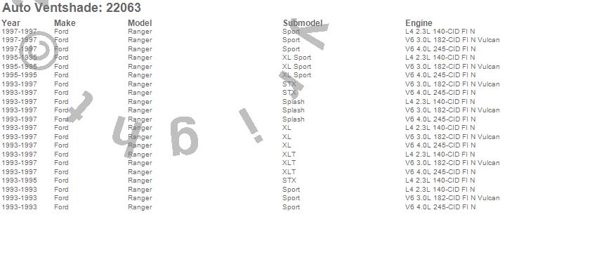 Below is an abbreviated list of applications for the Bugflector Stone/Bug Deflector.Ranger, Ford, 1997, 1996, 1995, 1994, 1993
