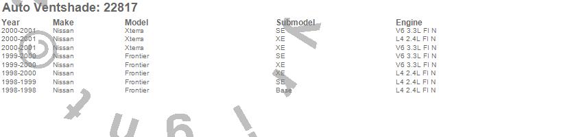 Below is an abbreviated list of applications for the Bugflector Stone/Bug Deflector.Frontier, Xterra, Nissan, 2001, 2000, 1999, 1998