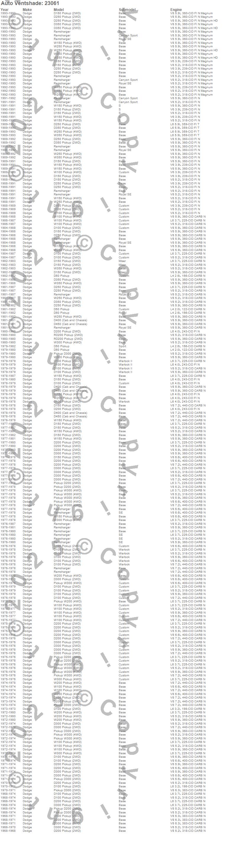 Below is an abbreviated list of applications for the Bugflector Stone/Bug Deflector.D100 Pickup, D150 Pickup, D200 Pickup, D250 Pickup, D300 Pickup, D350 Pickup, D400, D450, D50 Pickup, Ramcharger, RD200 Pickup, W100 Pickup, W150 Pickup, W200 Pickup, W250 Pickup, W300 Pickup, W350 Pickup, Dodge, 1993, 1992